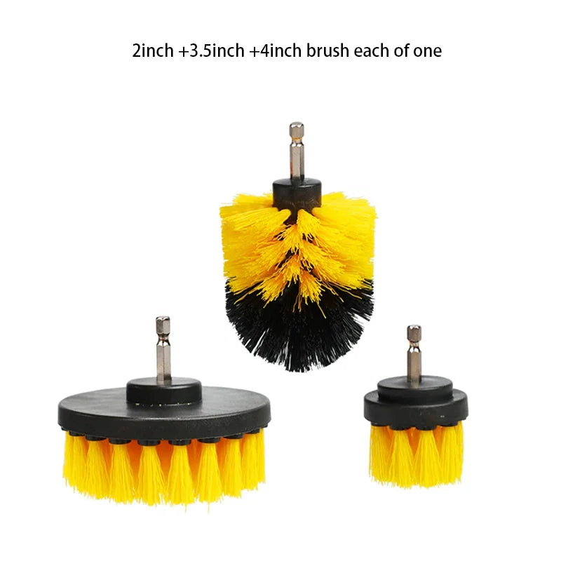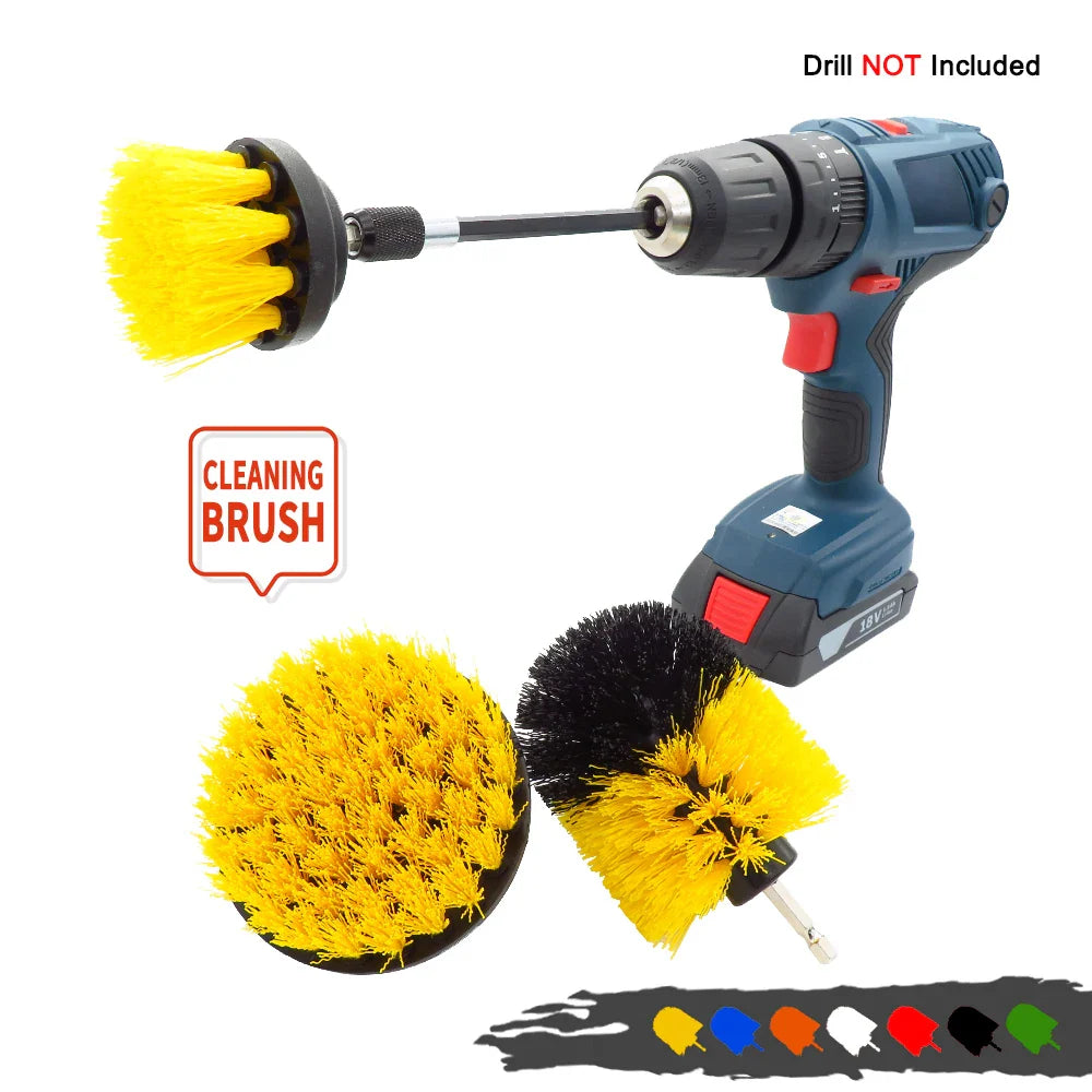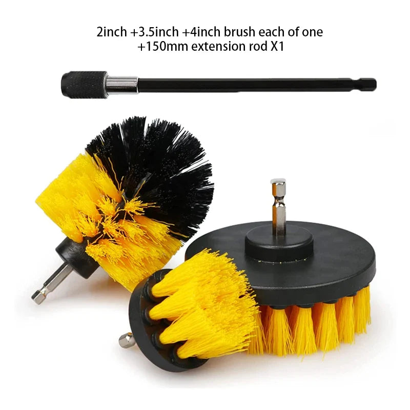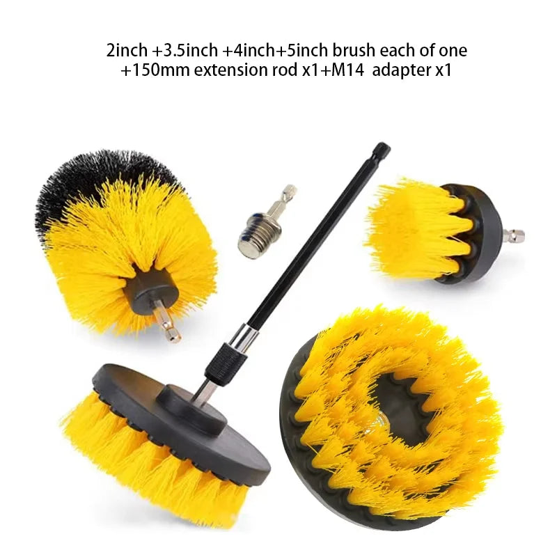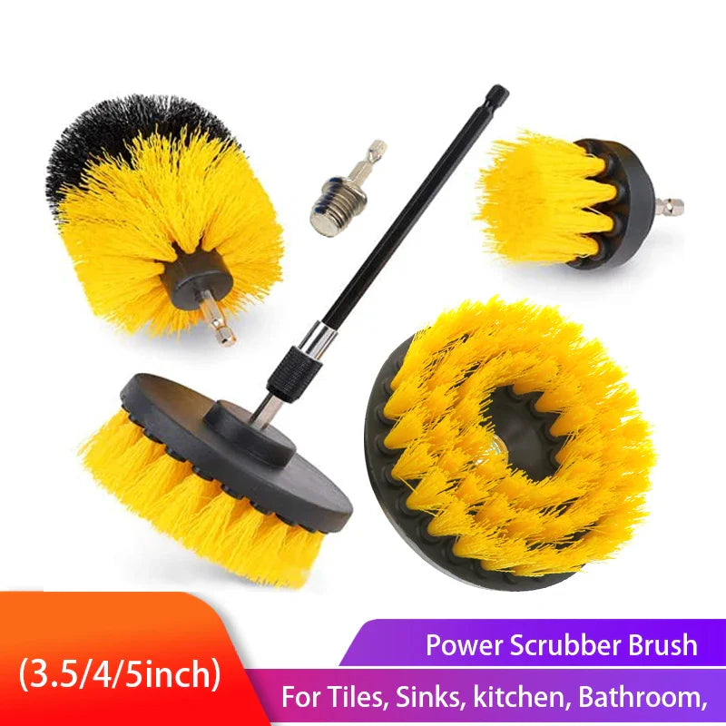 Power through dirt and grime effortlessly. This electric brush kit includes multiple heads and an extension handle to clean bathrooms, tires, and tiles with ease.