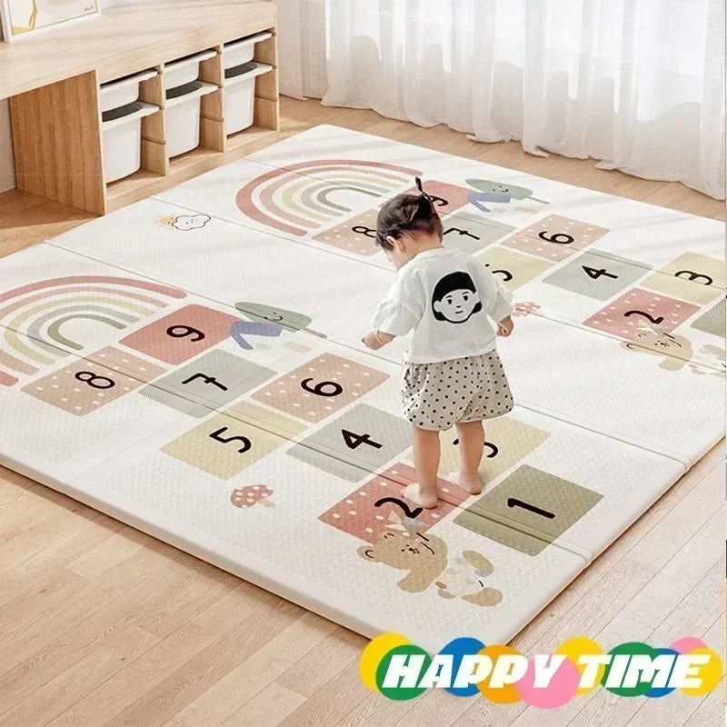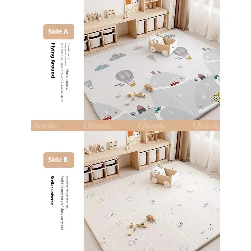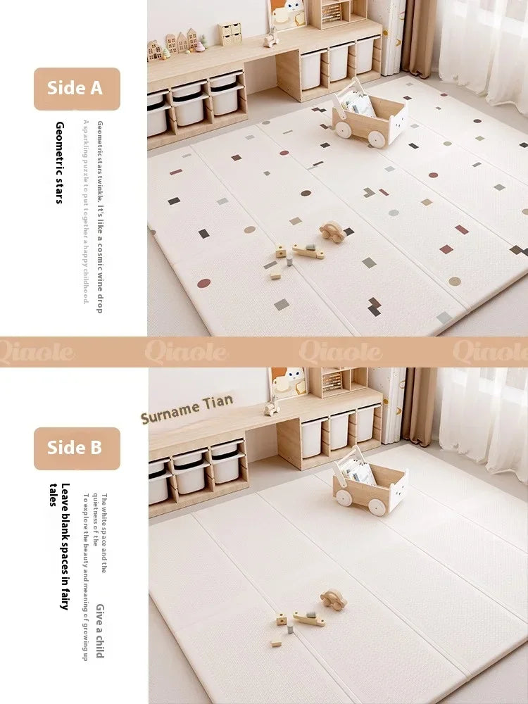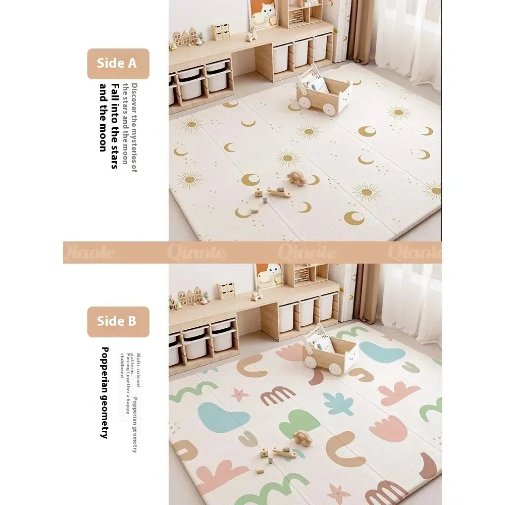 Reersible Design for Double Fun -- baby play mat reversible design matches different home décor perfectly. One side has cute and colorful rainbow shapes to keep infants engaged and curious, while the other side has a neutral light gray minimal design that complements most home decoration styles.