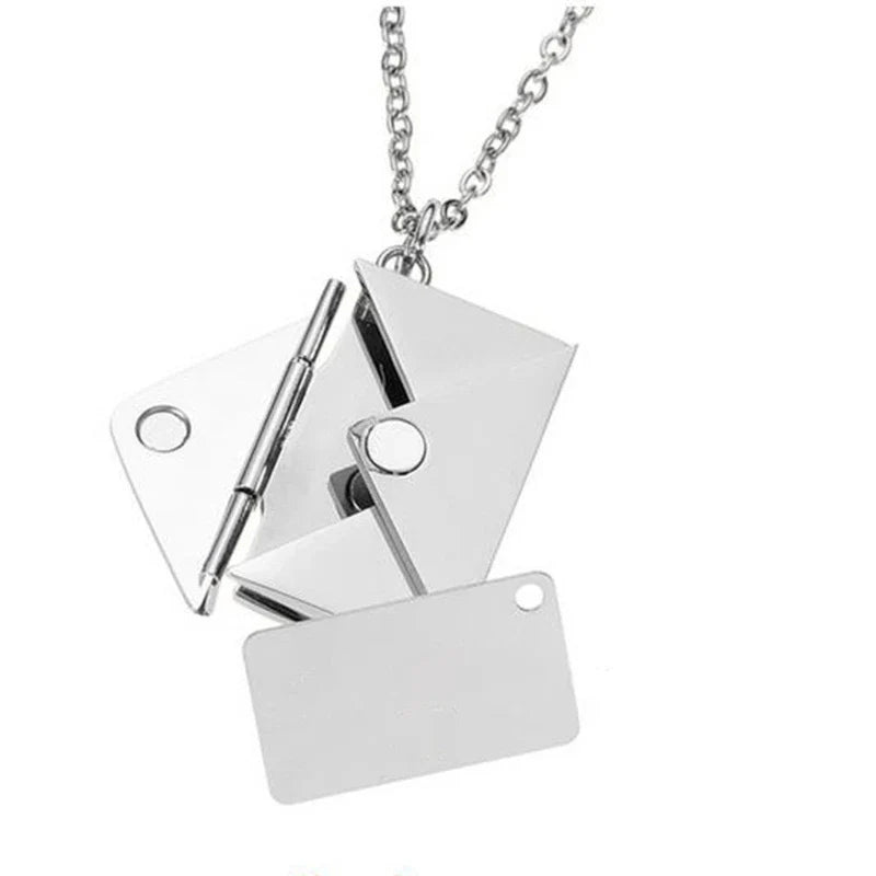 The Envelope Locket Necklace is a beautifully designed pendant that conceals a hidden message inside, making it a meaningful gift for any occasion.